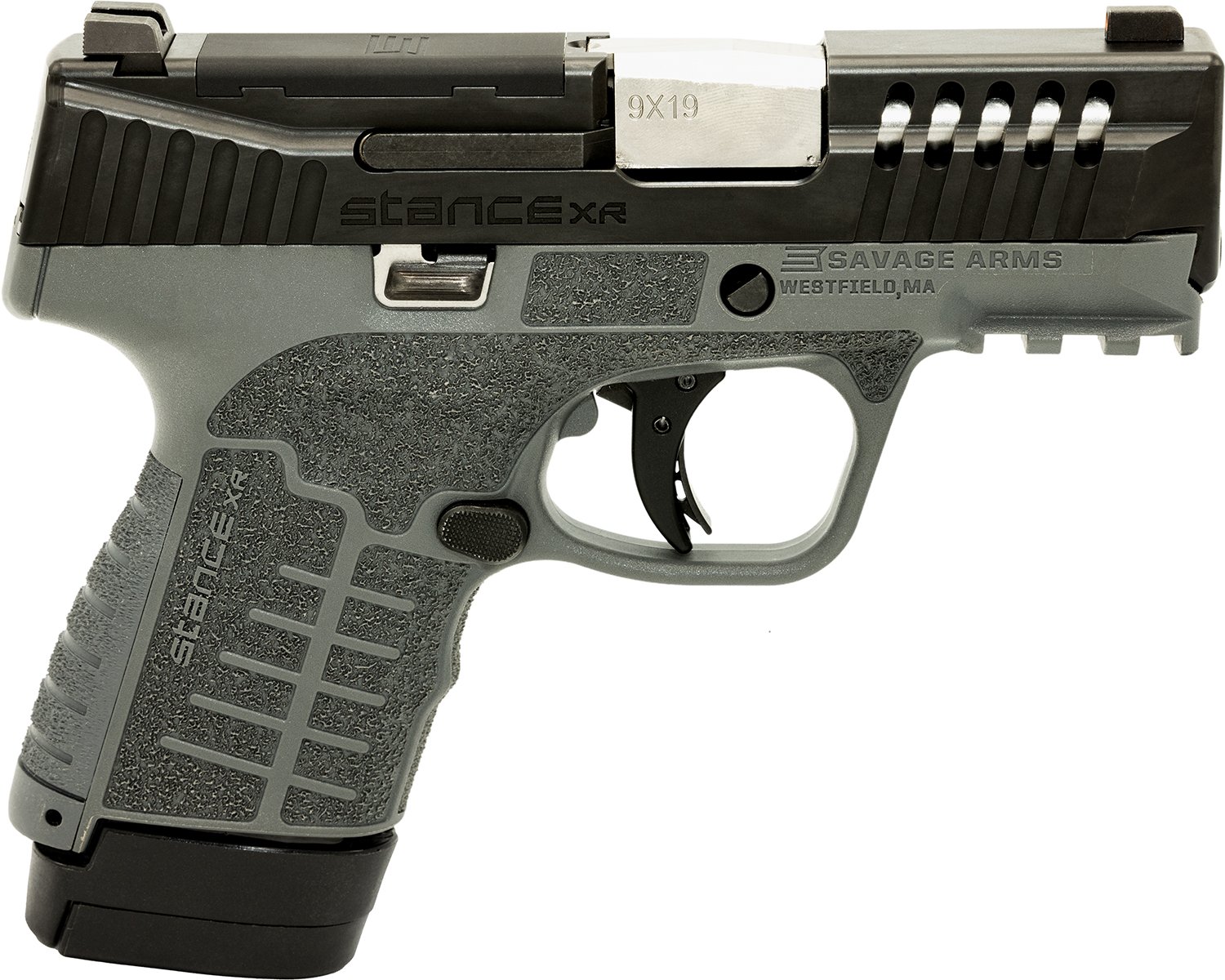 Savage Arms 67066 Stance XR Micro Frame 9mm Luger 13+1 3.20″ Stainless Steel Barrel, Black Nitride Ported Steel Slide, Gray Stainless Steel Frame w/Picatinny Rail, Gray GFN Grip, Ambidextrous